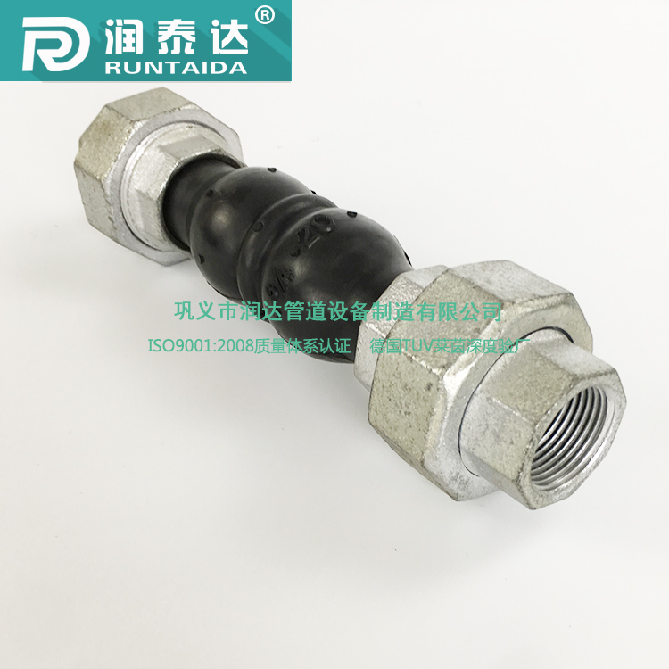 風機盤管橡膠接頭,是一(yī)種適用於空調係(xì)統風機盤管進出口水管連接(jiē)的新型軟性管道連接器件。該(gāi)接頭吸振效果(guǒ)顯著,承受壓力高〔1,6MPa )、耐溫性能(néng)好(-10^-10590 ),具有較大的自由偏轉和位移量,而(ér)兩端采用螺紋接口,因此(cǐ)安裝使用方便。橡膠接(jiē)頭主要由橡膠主體、尼(ní)龍簾布內襯、鋼絲繩骨架與鋼製(zhì)法蘭(lán)有機組合而成,兩端法蘭在橡膠主體上(shàng)可作360“任意旋(xuán)轉,特別便於施工安裝。